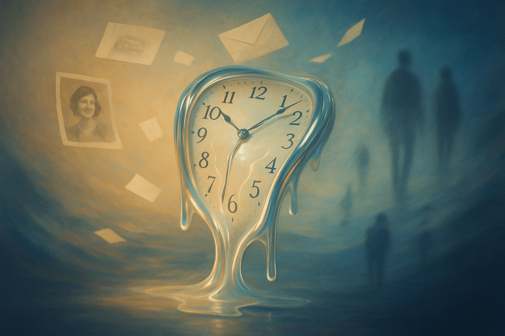 O tempo é um rio que não sabe voltar. E nós, criaturas de margem, aprendemos a nadar sem retorno. De vez em quando, a corrente traz um fragmento — uma lembrança, uma risada antiga, o eco de um nome. É o bastante para que o coração saiba que houve vida ali.